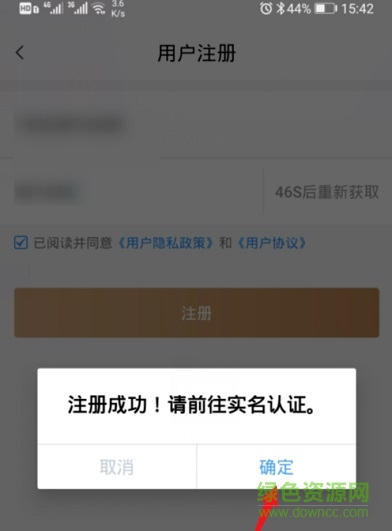 4.注冊完畢后,點擊確定,進入實名認(rèn)證界面。