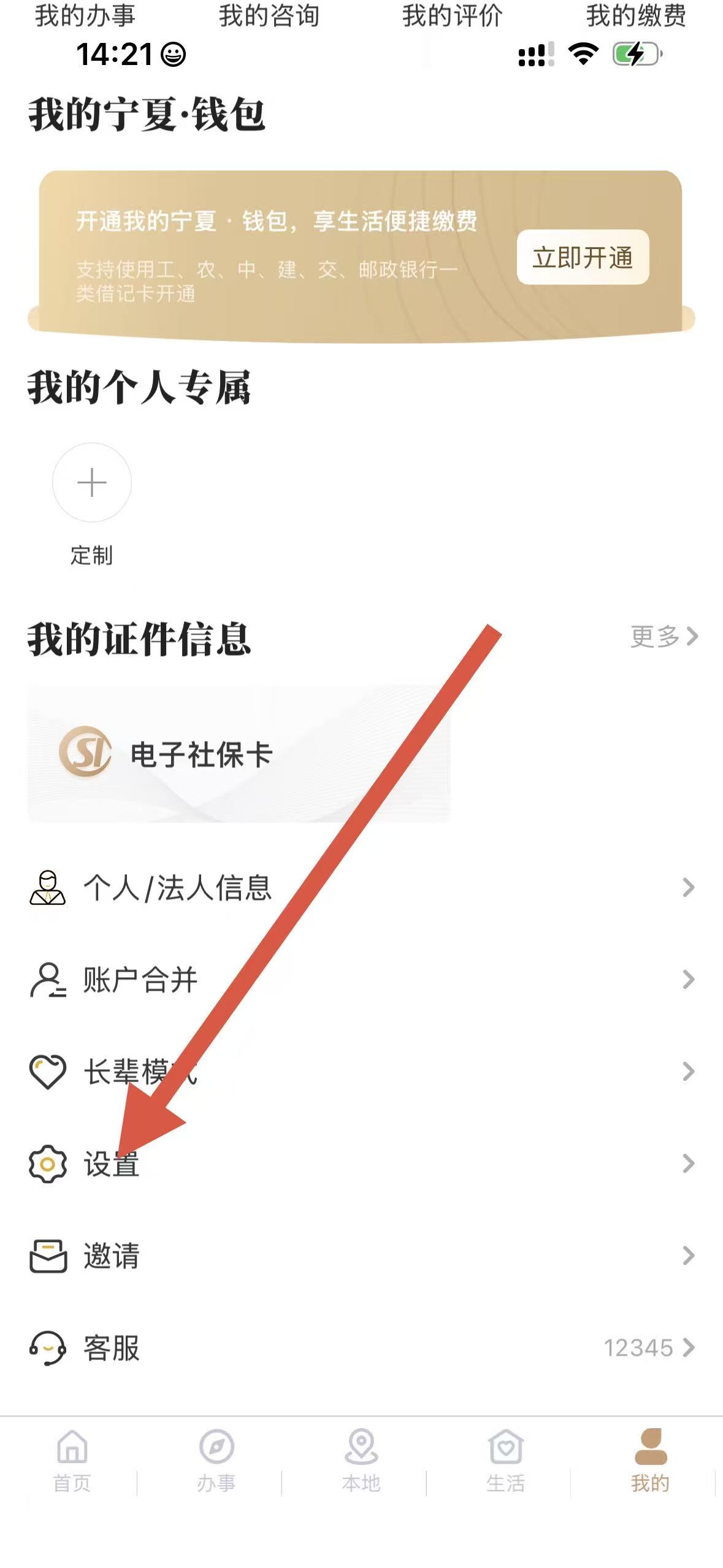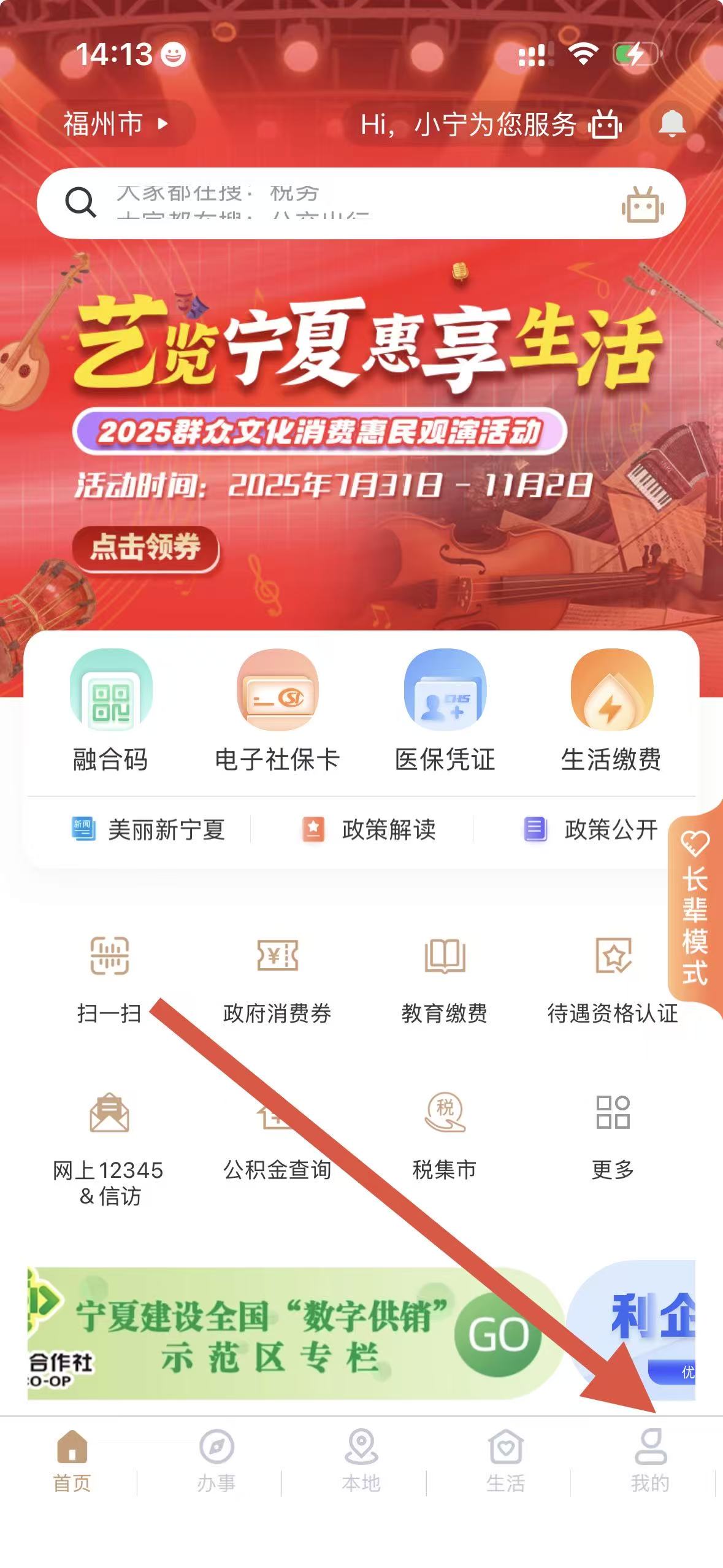 1、在我的寧夏首頁,點擊右下角我的選項,進入個人頁面。