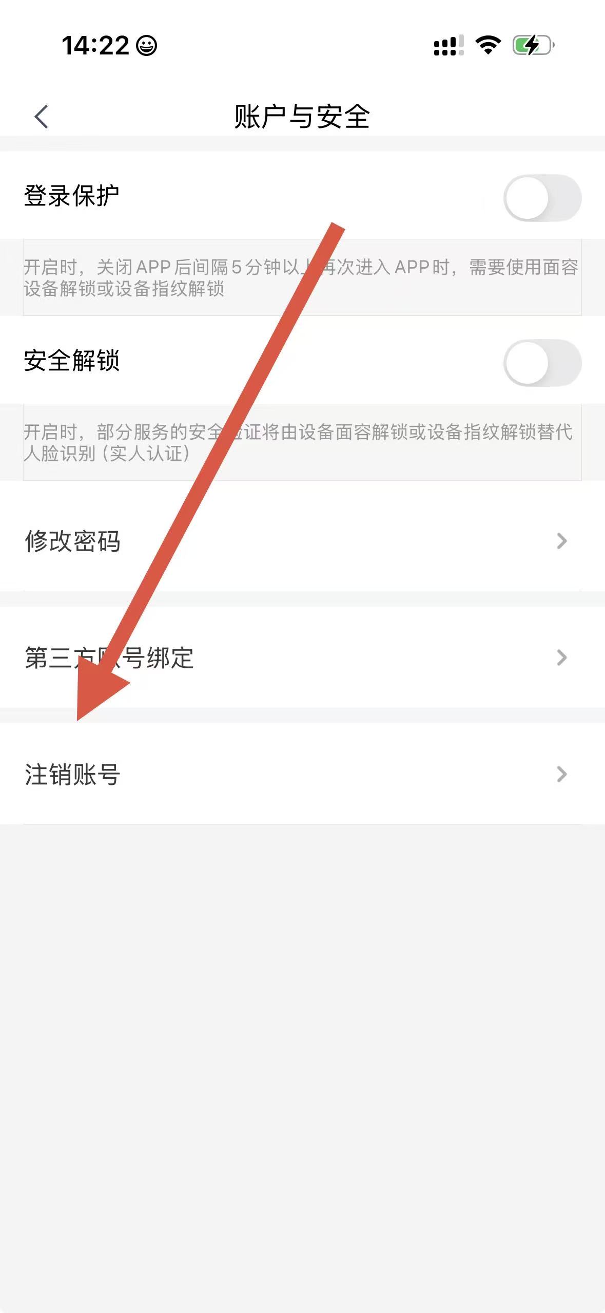 4、在賬戶與安全頁面,點擊注銷賬號選項。