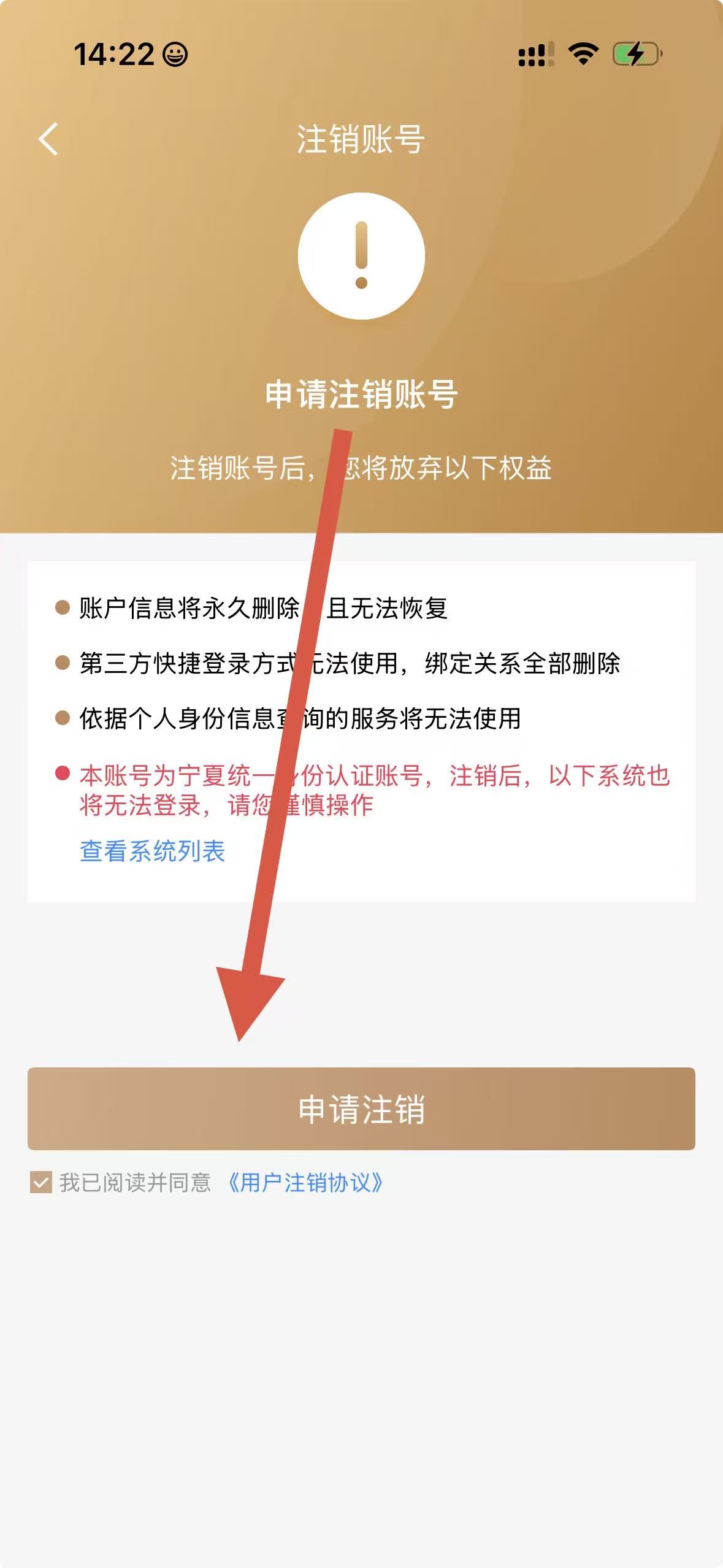 5、進入申請注銷賬號界面后,勾選同意協(xié)議并點擊申請注銷,即可注銷賬號。