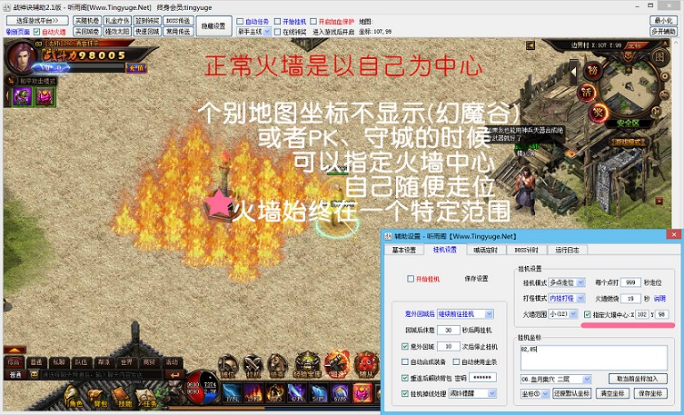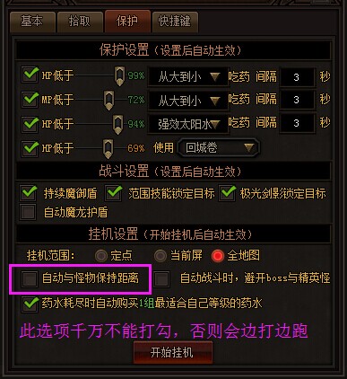 2.法師PK自動火墻: 在輔助設(shè)置火墻范圍里設(shè)置,再也不怕被戰(zhàn)士追著滿圖跑了;