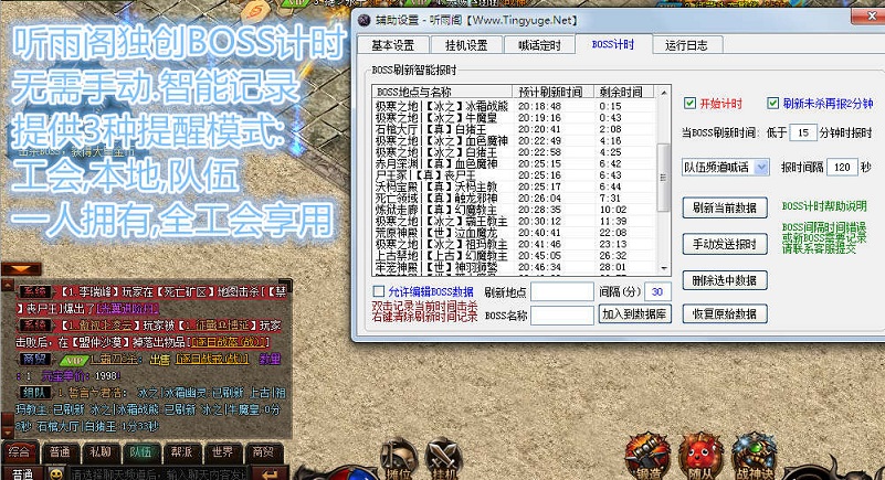 3.BOSS智能計時: 支持神艦及魔龍地圖;全自動任務(wù)升級,自動喊話;