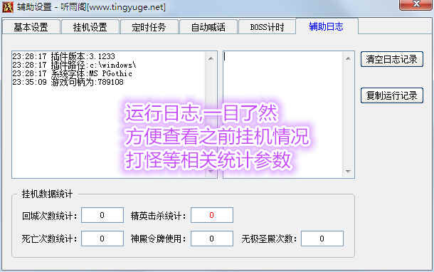 聽雨閣戰(zhàn)天輔助是為4399頁游《戰(zhàn)天》打造的全能輔助工具。軟件功能強大,為玩家們提供掛機刷精英、裝備修理、快速買藥、自動任務等功能。該軟件刷BOSS非常好用,會自動提升BOSS刷新時間,別人都搶都搶不到。