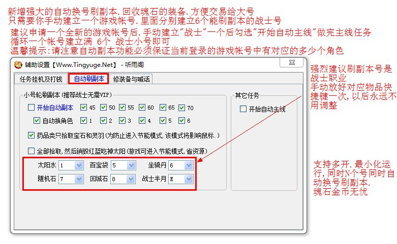 聽雨閣武尊輔助是專為頁游《武尊》打造的輔助工具。主要功能包括K加血,快速買藥,自動任務,掛機升級,自動挖礦,超速功勛交易,羽毛兌換綁金等功能,是你玩《武尊》的必備神器??!