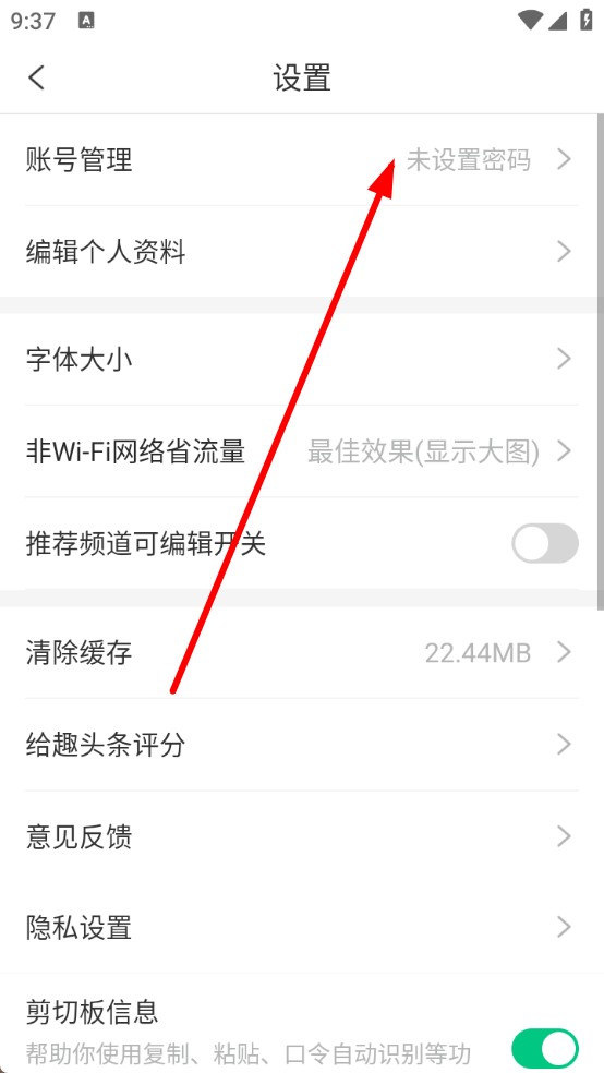2、進入設(shè)置頁面后,點擊賬號管理選項。