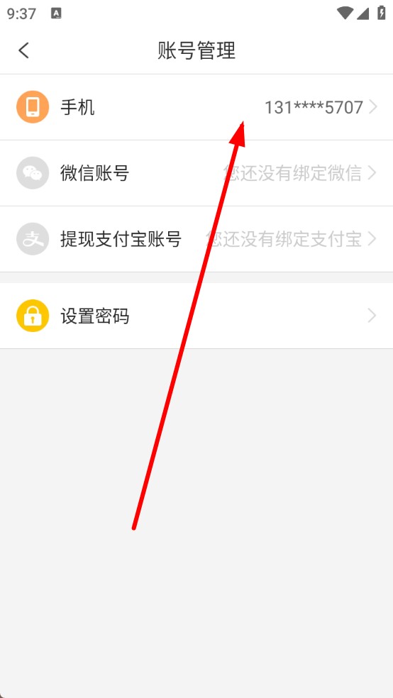 3、在賬號管理頁面中,點擊已綁定的手機選項。