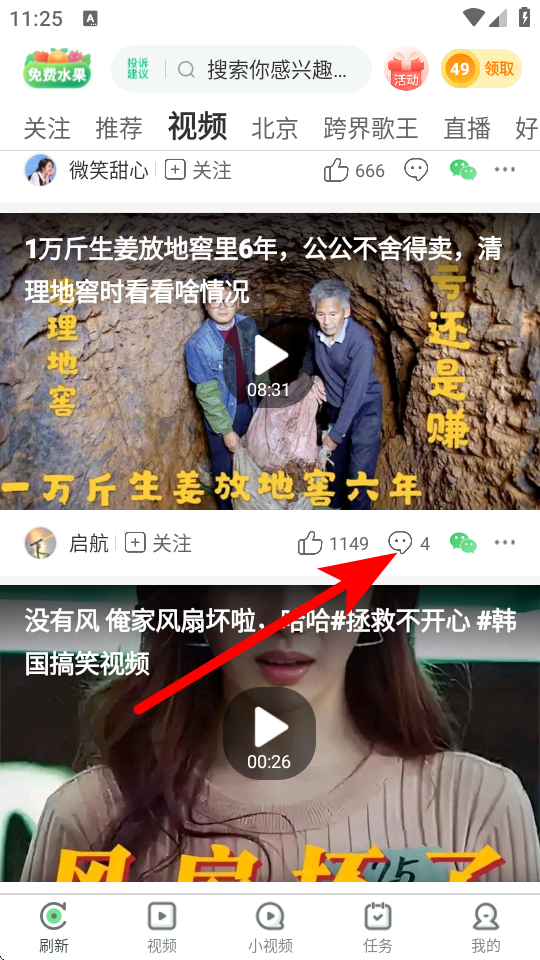 2、在視頻頻道頁面,點擊要評論的視頻下方的評論按鈕。