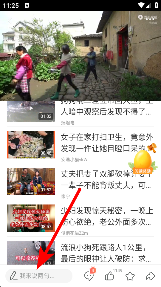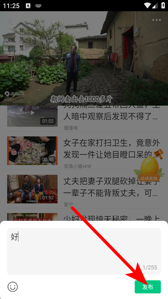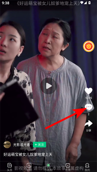 2、在小視頻界面,點擊右側(cè)評論圖標(biāo),彈出評論列表。
