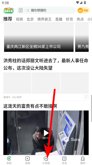 1、在趣頭條推薦頁面,點擊下方小視頻選項,進入小視頻界面。