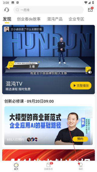1、打開混沌APP,點(diǎn)擊頁面底部我的,進(jìn)入個(gè)人頁面。