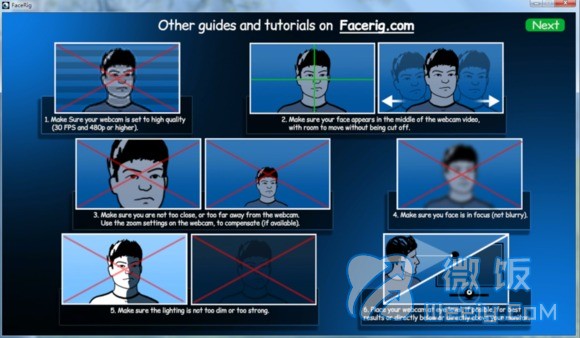 提醒:啟動會有些簡單的使用說明,主要是關于姿勢的。面部追蹤的話如果姿勢不對效果很差。