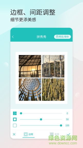拼秀秀手機版是一款非常好用的圖片視頻編輯app,支持將多個視頻進行剪輯拼接,還可以配樂加水印加邊框,操作簡單易上手,即使沒有基礎也可以輕松上手使用,歡迎喜愛的朋友到綠色資源網下載使用!