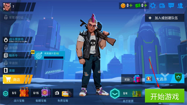 3、返回主界面,選擇“大逃殺”模式,點擊“開始游戲”進入對應(yīng)對局。
