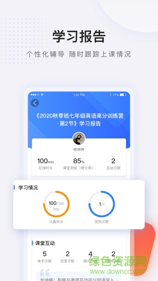 助教全程陪伴,作業(yè)錯題講解視頻實時推動,讓疑難問題不留堂;家長無需全程陪伴,一鍵實時監(jiān)督學生上課情況,輕松獲取學生個性化學習報告,第一時間掌握孩子學習情況。