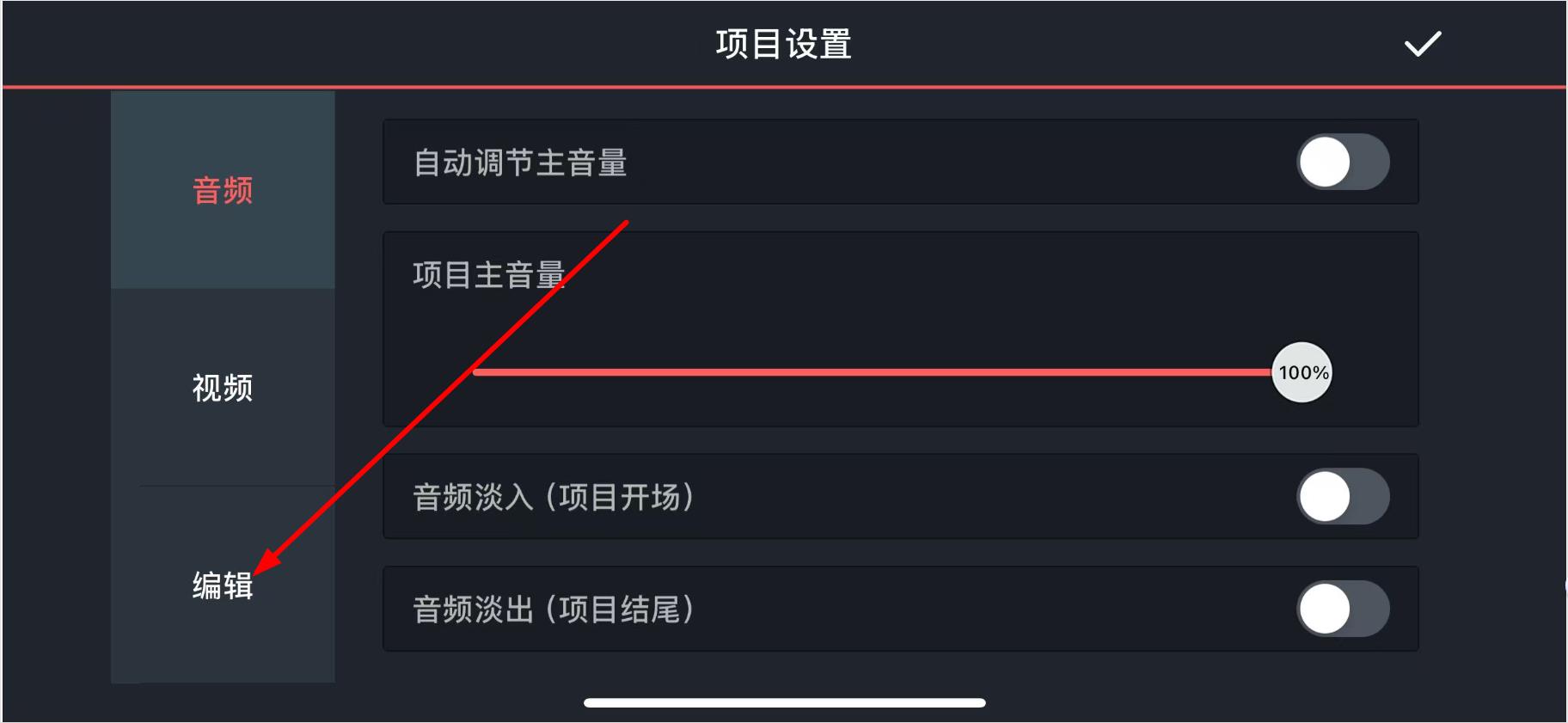 2、在彈出的項目設(shè)置窗口中,點(diǎn)擊左側(cè)列表里的編輯選項。