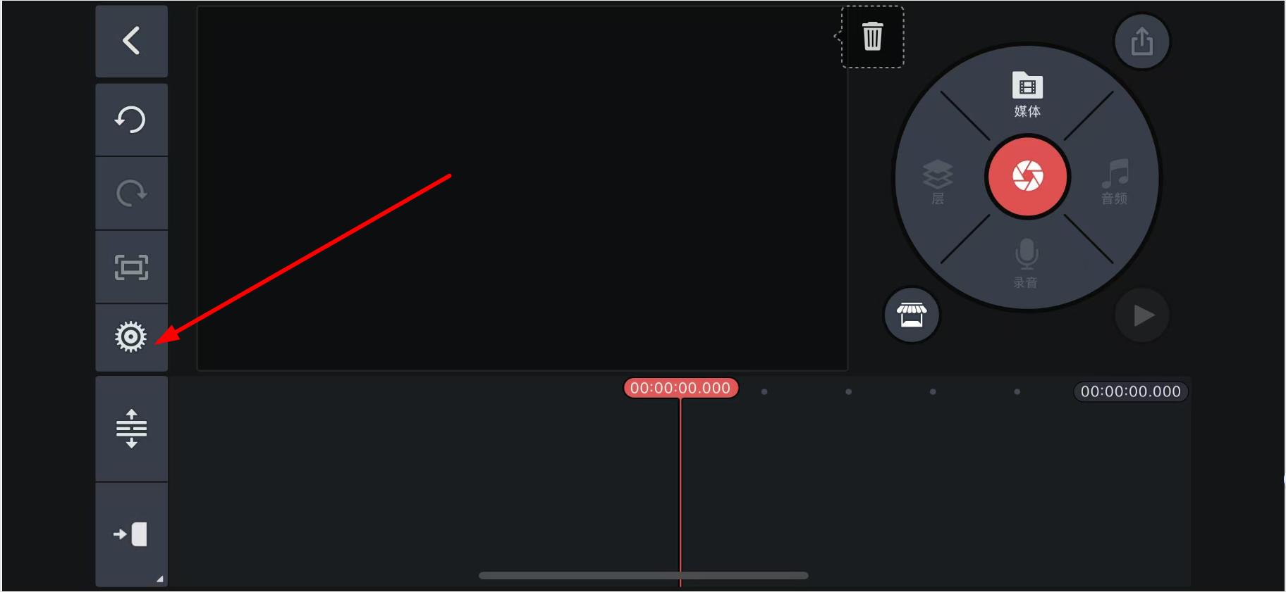 1、打開巧影進(jìn)入編輯界面,點(diǎn)擊界面左側(cè)的設(shè)置圖標(biāo)。
