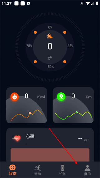 1、打開(kāi)cofit手表APP,點(diǎn)擊底部我的選項(xiàng),進(jìn)入個(gè)人頁(yè)面。