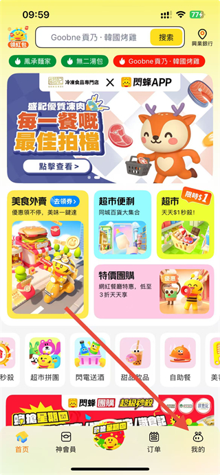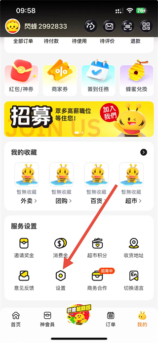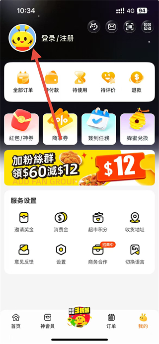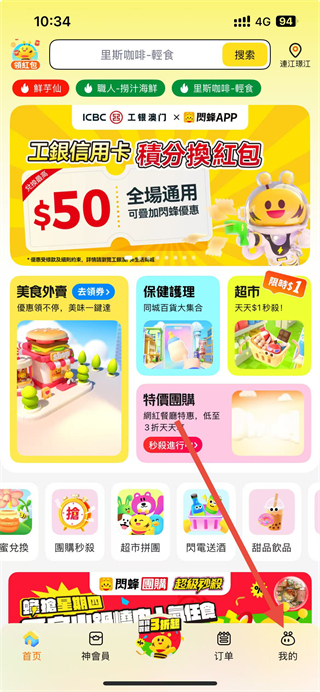 1、打開(kāi)澳門(mén)閃蜂外賣(mài)APP,點(diǎn)擊右下角我的進(jìn)入個(gè)人頁(yè)面。