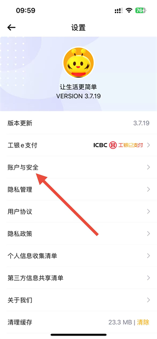 3、進(jìn)入設(shè)置頁(yè)面后,點(diǎn)擊賬戶(hù)與安全選項(xiàng)。
