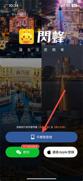 3、在登錄界面下方,點(diǎn)擊選擇手機(jī)號(hào)登錄選項(xiàng)按鈕。