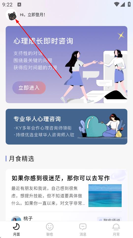 1、打開月食APP,點擊左上角的頭像圖標,進入登錄界面。