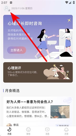 1、打開月食APP,點擊左上角個人頭像,展開側(cè)邊欄。