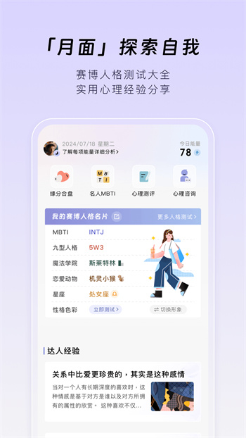 1、全新月食賽博人格測試上線,一鍵生成專屬人格海報。