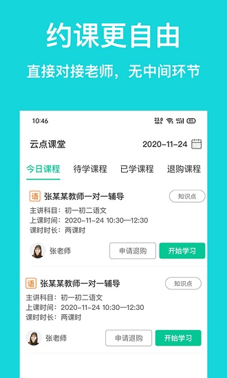 云點私塾一款線上教育平臺面向初大學(xué)生外所有的人群,名師在線上課一對一進行輔導(dǎo)大大提高學(xué)生學(xué)習(xí)效率。每一天都有線上直播課程錯過的學(xué)生也可以看直播回放。學(xué)生還可以選擇自己喜歡的老師進行學(xué)習(xí)這樣能讓他更好的掌握所學(xué)的科目。有需要的朋友快來下載吧。