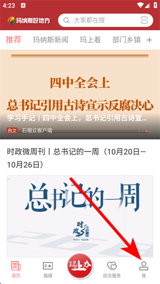 1、打開瑪納斯好地方APP首頁,點擊底部我,進入個人的頁面。