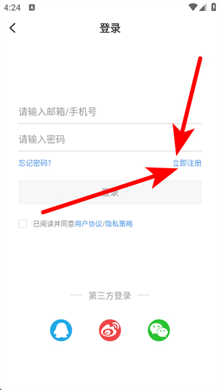 3、在登錄的界面,我們需要點擊立即注冊的按鈕,進入注冊的頁面。