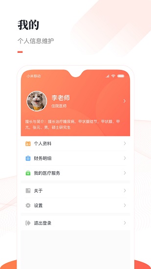 患者管理,在線維護并管理醫(yī)生的患者資料及康復(fù)方案。