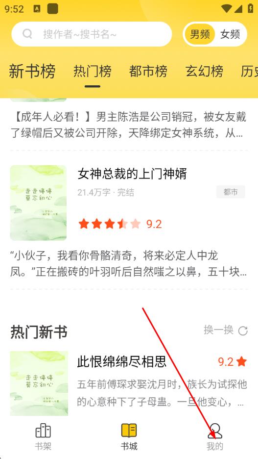 1、打開花生小說App,點(diǎn)擊底部導(dǎo)航欄最右側(cè)的我的選項(xiàng)。