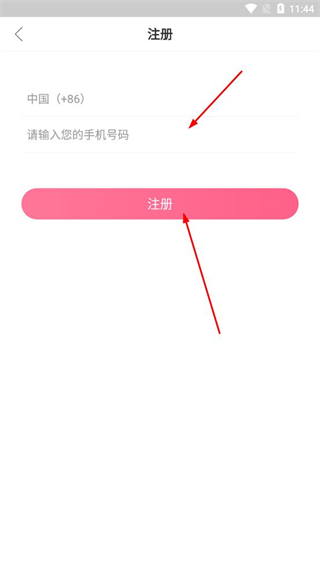 2、在注冊頁面,輸入手機號碼,點擊注冊。