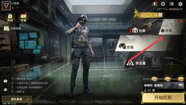 1、進(jìn)入超凡先鋒游戲主界面后,點(diǎn)擊外觀,進(jìn)入個(gè)人外觀頁面。