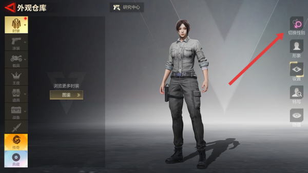 2、在個(gè)人外觀頁面中,找到右側(cè)項(xiàng)目欄的切換性別按鈕并點(diǎn)擊。