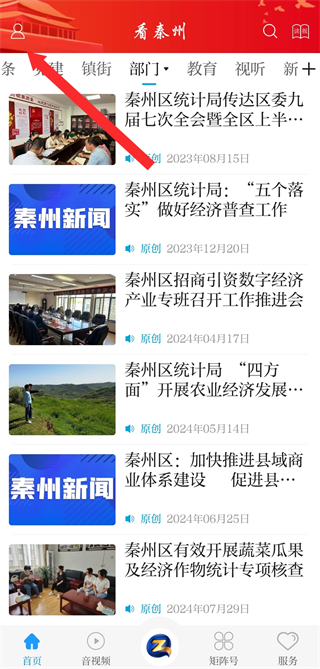 1、打開看秦州app,點擊左上角的圖標,進入個人的頁面。