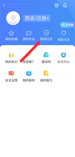 2、在個人的頁面,需要點擊閱讀歷史,進入閱讀歷史的頁面。