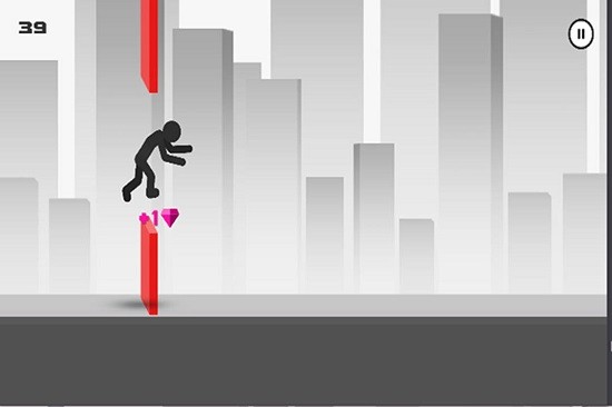 簡單的火柴人畫風(fēng),操作也非常簡單,真正的難度只是考驗?zāi)愕姆磻?yīng)速度和眼手配合而已。游戲采用觸摸操作,利用跳躍和翻滾鍵躲避關(guān)卡里忽高忽低的障礙。