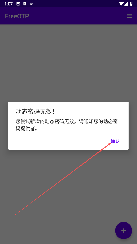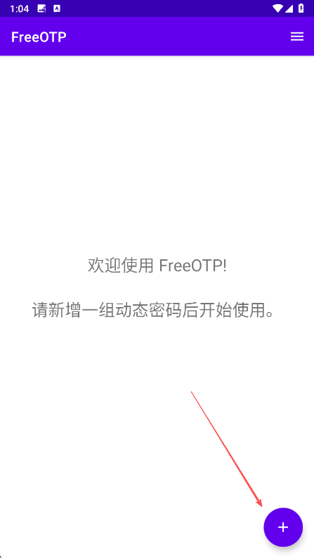 1、打開(kāi)FreeOTP應(yīng)用,點(diǎn)擊右下角紫色+按鈕。