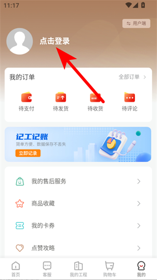 2、在個人中心頁面,點擊點擊登錄選項,進入登錄頁面。