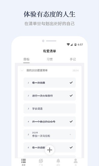 你有愿望清單嗎?有愛清單可以幫助你發(fā)現(xiàn)自己的目標、愿望和夢想,以及記錄關(guān)于它們的故事。在這里,你還可以通過打卡來堅持一項好習(xí)慣,更可通過清單體,來記錄你想要紀念的任何事。在有愛清單,還有更多美好待你發(fā)現(xiàn),或共同創(chuàng)建!我們永遠相信,唯愛與成長不可辜負,愿你我在有愛清單里相遇吧!