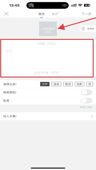 2、在圖文的頁(yè)面內(nèi),點(diǎn)擊+添加圖片的按鈕,并輸入標(biāo)題、正文等。