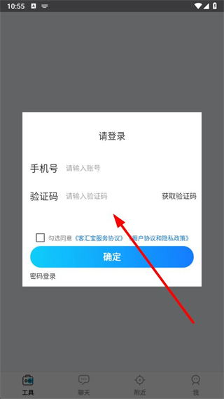 4、在驗(yàn)證碼登錄頁面輸入手機(jī)號,獲取并輸入驗(yàn)證碼,勾選同意相關(guān)協(xié)議后點(diǎn)擊確定完成登錄。