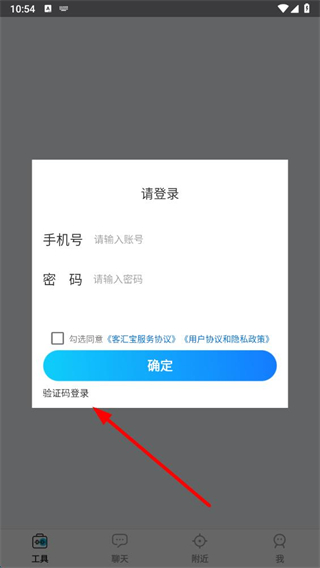 3、在登錄界面點(diǎn)擊驗(yàn)證碼登錄選項(xiàng),切換到驗(yàn)證碼登錄頁面。