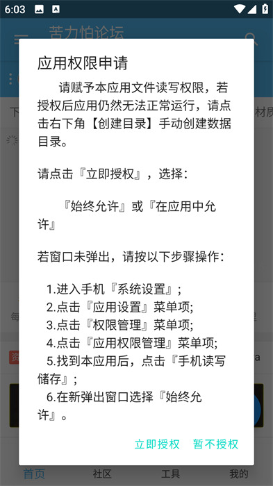 1、首先你需要在本站內(nèi)將軟件下載到設(shè)備的首頁(yè)上,這樣能順利安裝,點(diǎn)擊進(jìn)入之后出現(xiàn)的彈窗點(diǎn)擊【立即授權(quán)】,如下圖;
