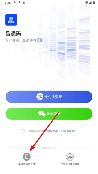 3、在登錄選擇界面,選擇“手機(jī)驗(yàn)證碼登錄”,進(jìn)入手機(jī)號(hào)登錄頁(yè)面。