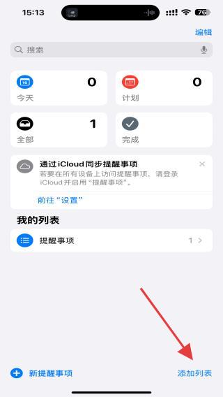 4、點(diǎn)擊后,會(huì)進(jìn)入新建列表的界面內(nèi),可點(diǎn)擊左下角新提醒事項(xiàng)添加重要事項(xiàng)。