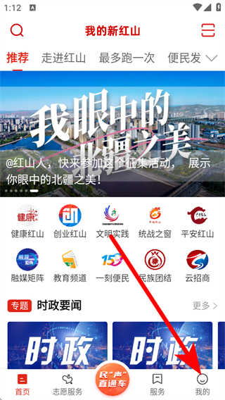 1、打開我的新紅山APP首頁,點擊底部我的,進入個人的頁面。