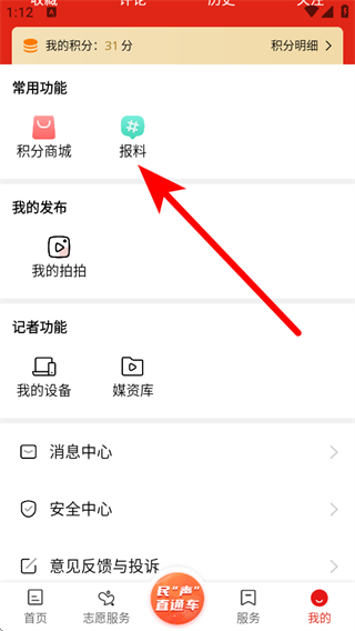 2、在個人的頁面,點擊報料的選項,進入我的報料的界面。