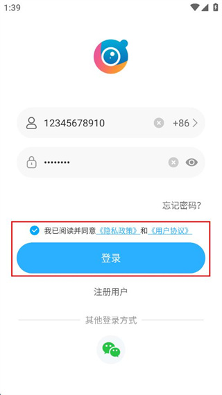 4、勾選同意協(xié)議后點(diǎn)擊登錄按鈕,完成賬號(hào)登錄操作。
